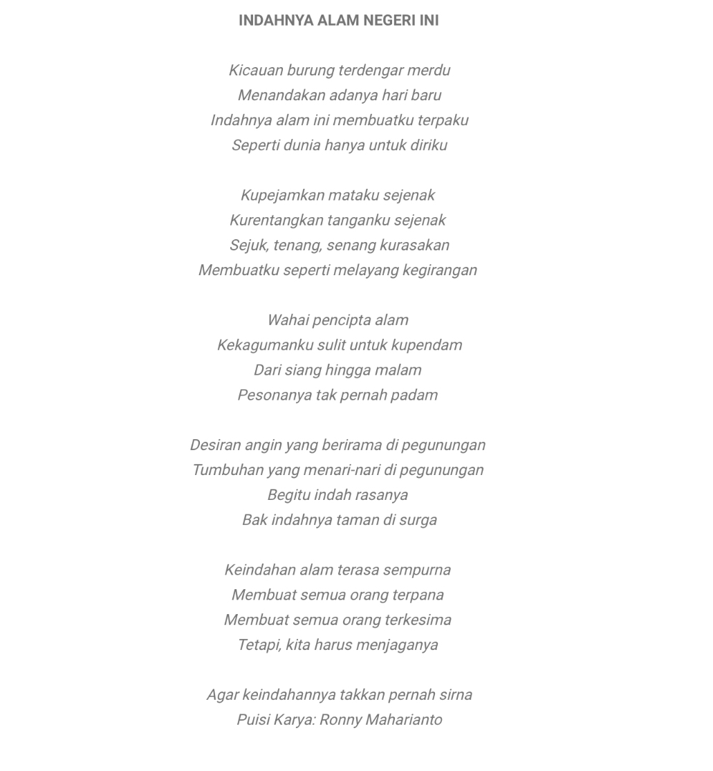 Puisi Tentang Kekayaan Alam Indonesia / Contoh Puisi Keindahan Alam Vergiltreadway S Blog / We did not find results for:. We did not find results for: Puisi tentang kekayaan alam indonesia. Check spelling or type a new query. Maybe you would like to learn more about one of these?